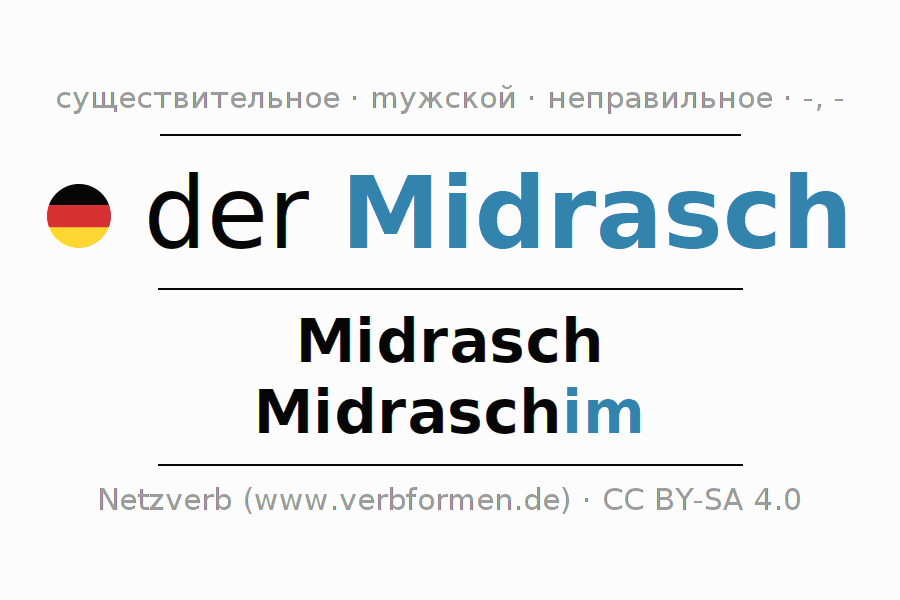 - Множественное число: die Midraschim, der Midraschim, den Midraschim, die Midraschim