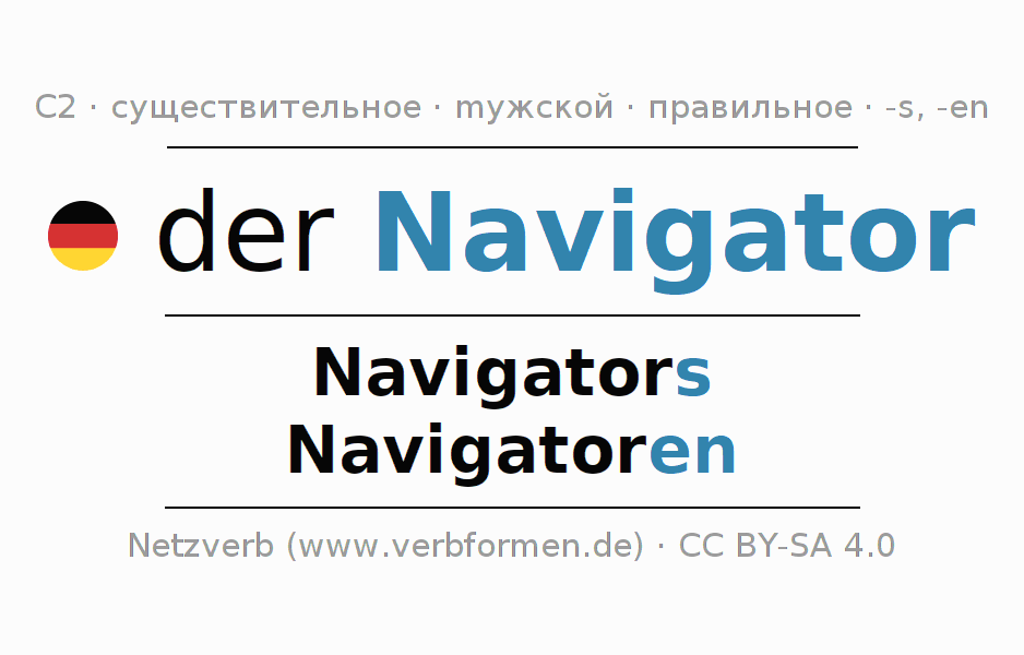 - Единственное число: der Navigator, des Navigators, dem Navigator, den Navigator