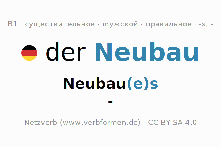 - Единственное число: der Neubau, des Neubau(e)s, dem Neubau, den Neubau