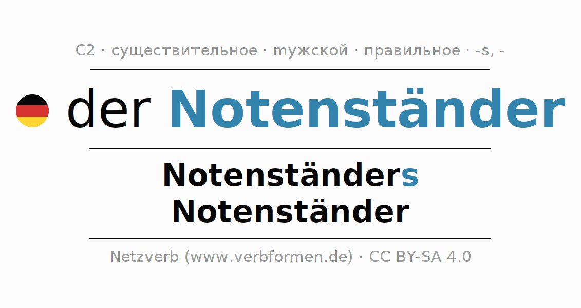 - Единственное число: der Notenständer, des Notenständers, dem Notenständer, den Notenständer