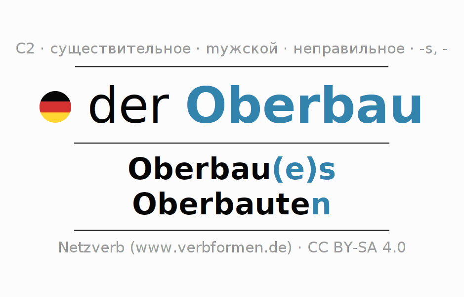 - Множественное число: die Oberbauten, der Oberbauten, den Oberbauten, die Oberbauten