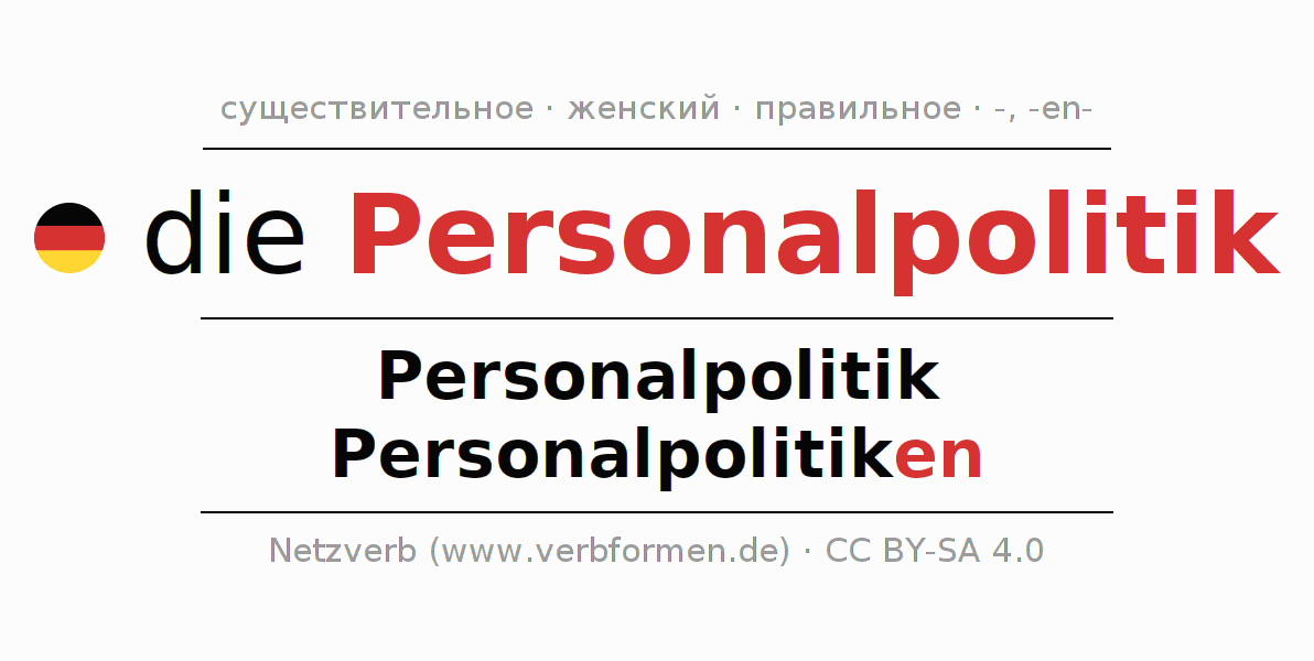 - Единственное число: die Personalpolitik, der Personalpolitik, der Personalpolitik, die Personalpolitik