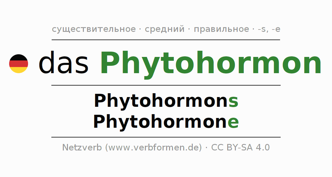 - Множественное число: die Phytohormone, der Phytohormone, den Phytohormonen, die Phytohormone
