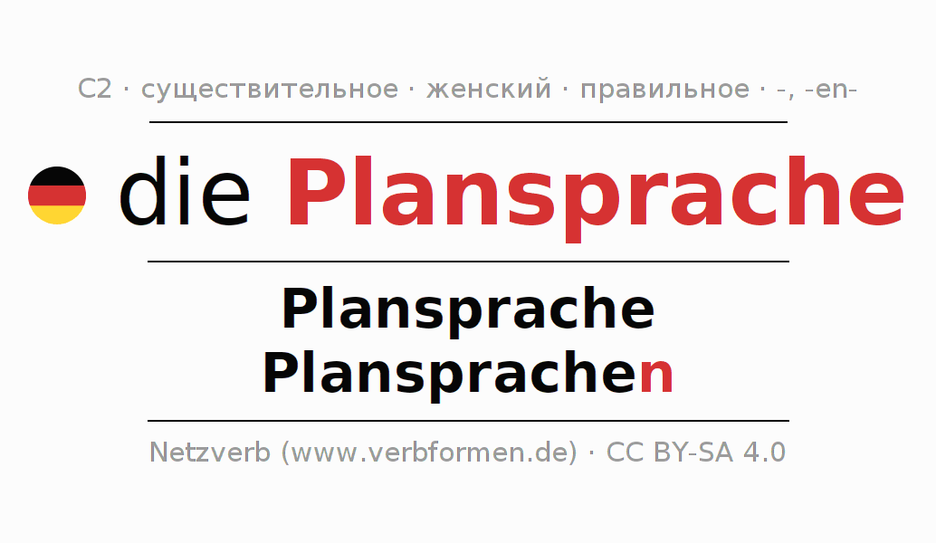 - Множественное число: die Plansprachen, der Plansprachen, den Plansprachen, die Plansprachen