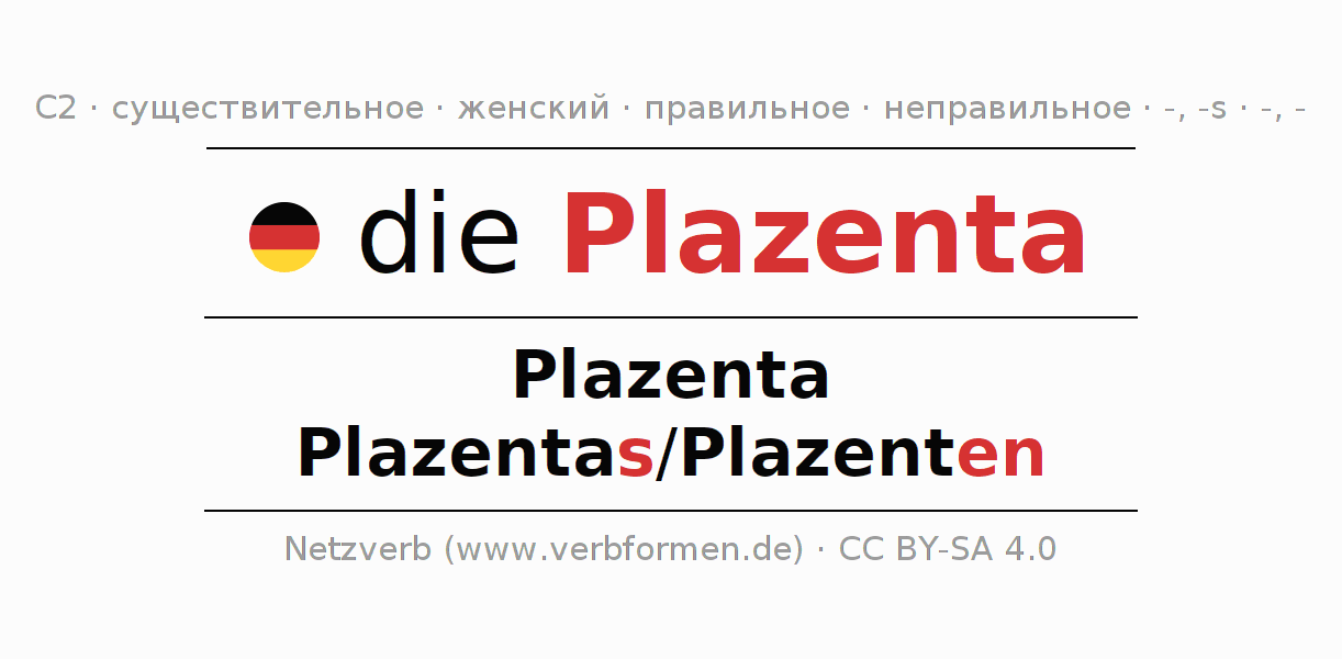 - Единственное число: die Plazenta, der Plazenta, der Plazenta, die Plazenta