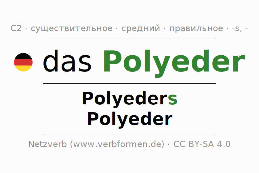 - Множественное число: die Polyeder, der Polyeder, den Polyedern, die Polyeder