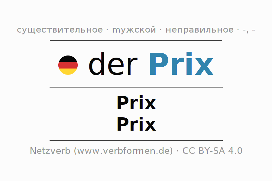 - Множественное число: die Prix, der Prix, den Prix, die Prix