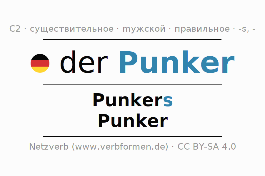 - Множественное число: die Punker, der Punker, den Punkern, die Punker