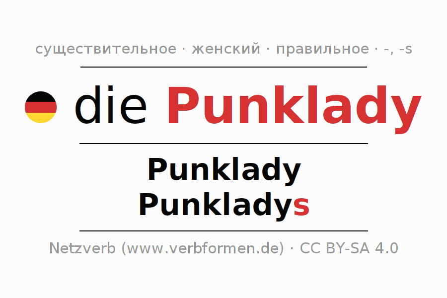 - Множественное число: die Punkladys, der Punkladys, den Punkladys, die Punkladys