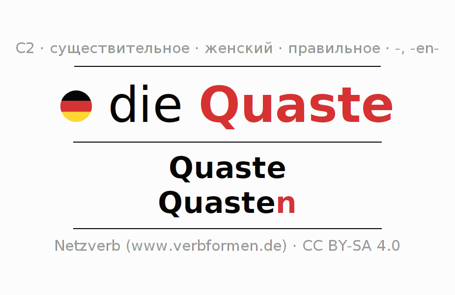 - Единственное число: die Quaste, der Quaste, der Quaste, die Quaste