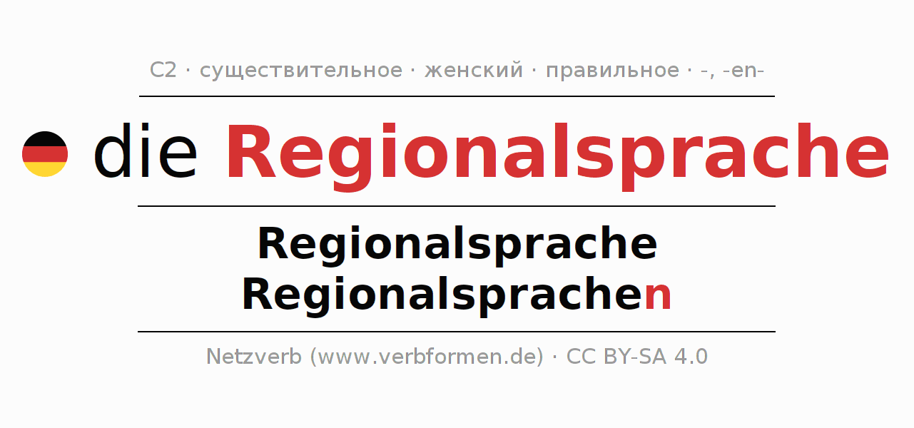 - Единственное число: die Regionalsprache, der Regionalsprache, der Regionalsprache, die Regionalsprache