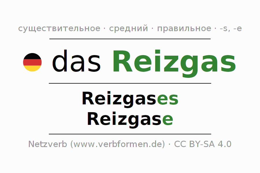 - Единственное число: das Reizgas, des Reizgases, dem Reizgas(e), das Reizgas