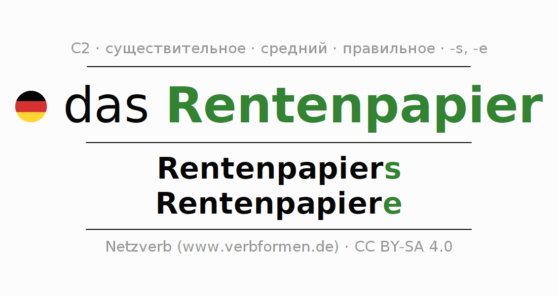 - Единственное число: das Rentenpapier, des Rentenpapiers, dem Rentenpapier, das Rentenpapier