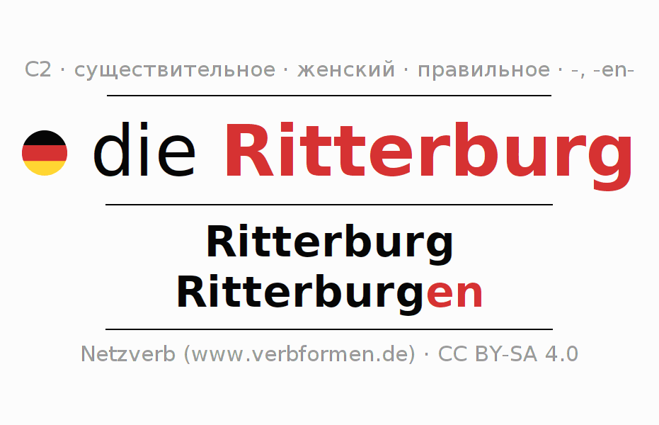 - Единственное число: die Ritterburg, der Ritterburg, der Ritterburg, die Ritterburg