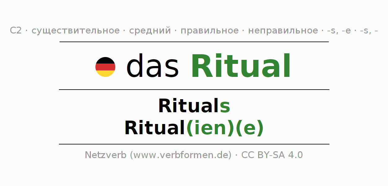 | Вин. | das Ritual | die Ritual(ien)(e) |