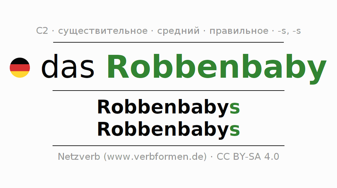 - Единственное число: das Robbenbaby, des Robbenbabys, dem Robbenbaby, das Robbenbaby