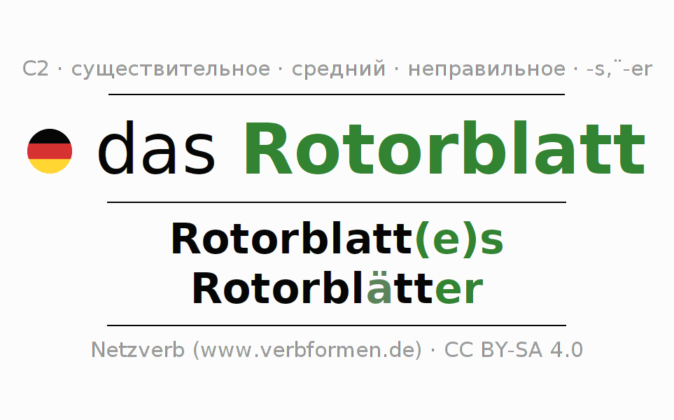 - Множественное число: die Rotorblätter, der Rotorblätter, den Rotorblättern, die Rotorblätter