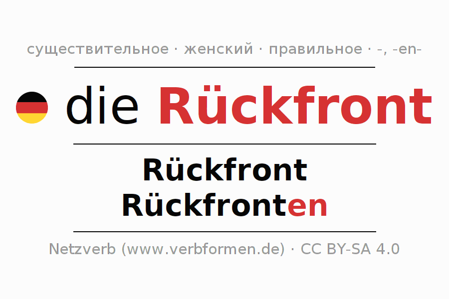 - Единственное число: die Rückfront, der Rückfront, der Rückfront, die Rückfront
