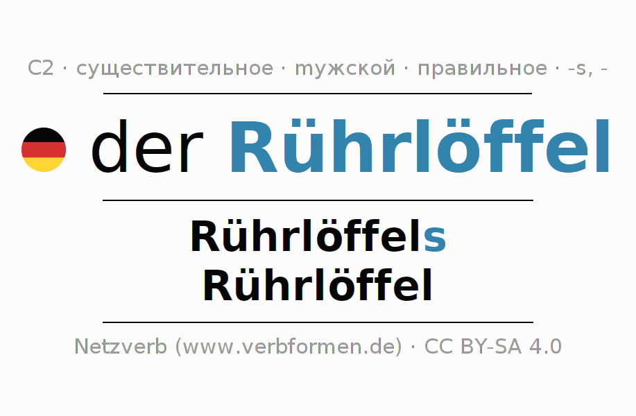 - Единственное число: der Rührlöffel, des Rührlöffels, dem Rührlöffel, den Rührlöffel