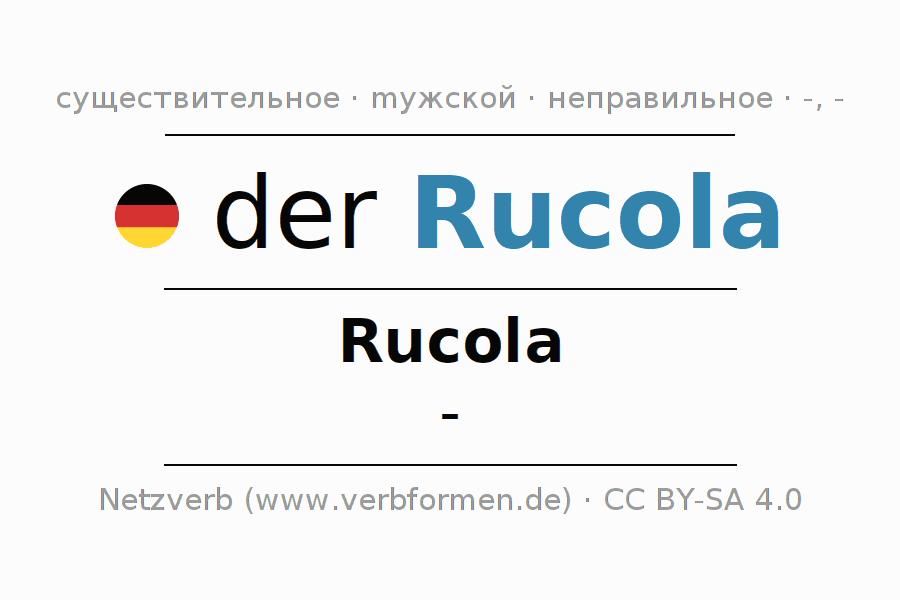 - Единственное число: der Rucola, des Rucola, dem Rucola, den Rucola