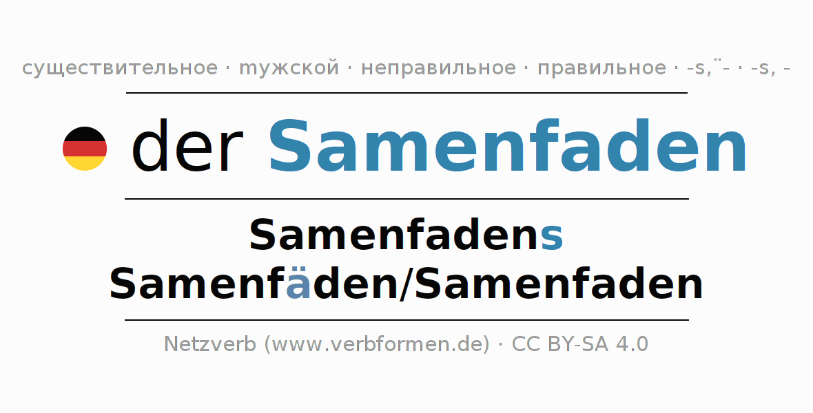 - Единственное число: der Samenfaden, des Samenfadens, dem Samenfaden, den Samenfaden