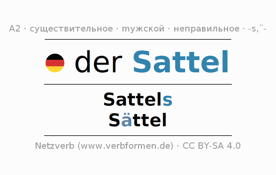 - Единственное число: der Sattel, des Sattels, dem Sattel, den Sattel