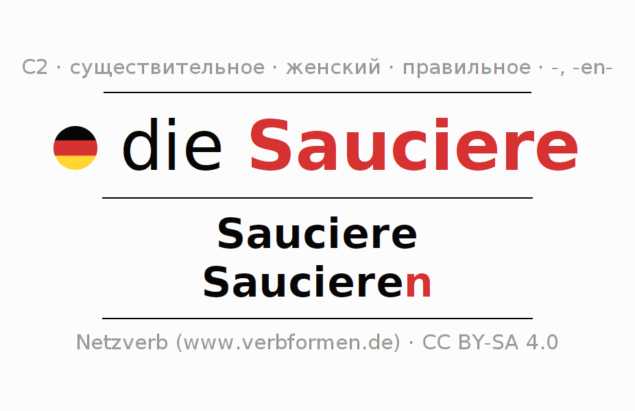 - Множественное число: die Saucieren, der Saucieren, den Saucieren, die Saucieren