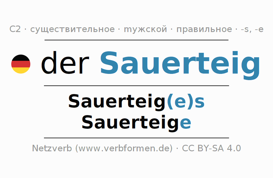 - Множественное число: die Sauerteige, der Sauerteige, den Sauerteigen, die Sauerteige