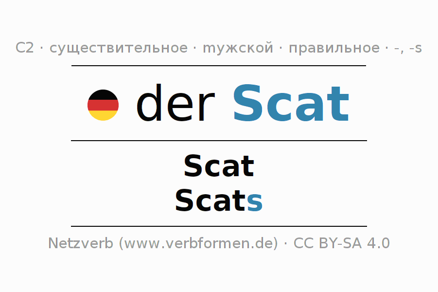 - Единственное число: der Scat, des Scat, dem Scat, den Scat
