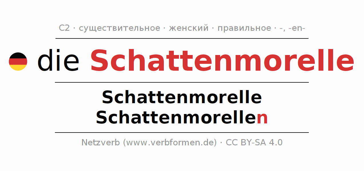 - Единственное число: die Schattenmorelle, der Schattenmorelle, der Schattenmorelle, die Schattenmorelle