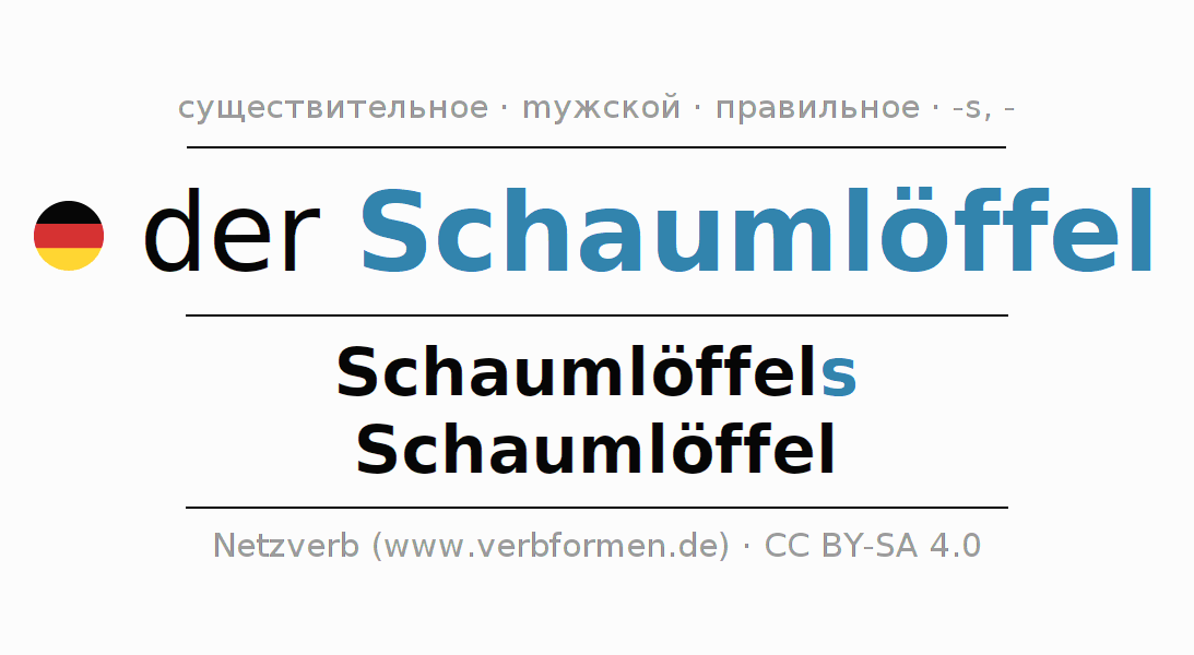 - Единственное число: der Schaumlöffel, des Schaumlöffels, dem Schaumlöffel, den Schaumlöffel
