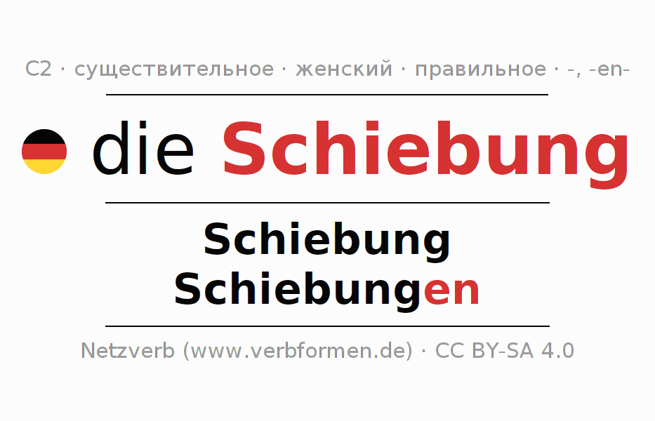 - Единственное число: die Schiebung, der Schiebung, der Schiebung, die Schiebung