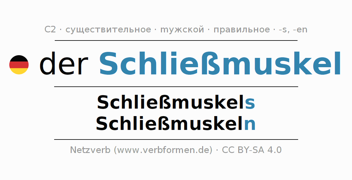 - Единственное число: der Schließmuskel, des Schließmuskels, dem Schließmuskel, den Schließmuskel