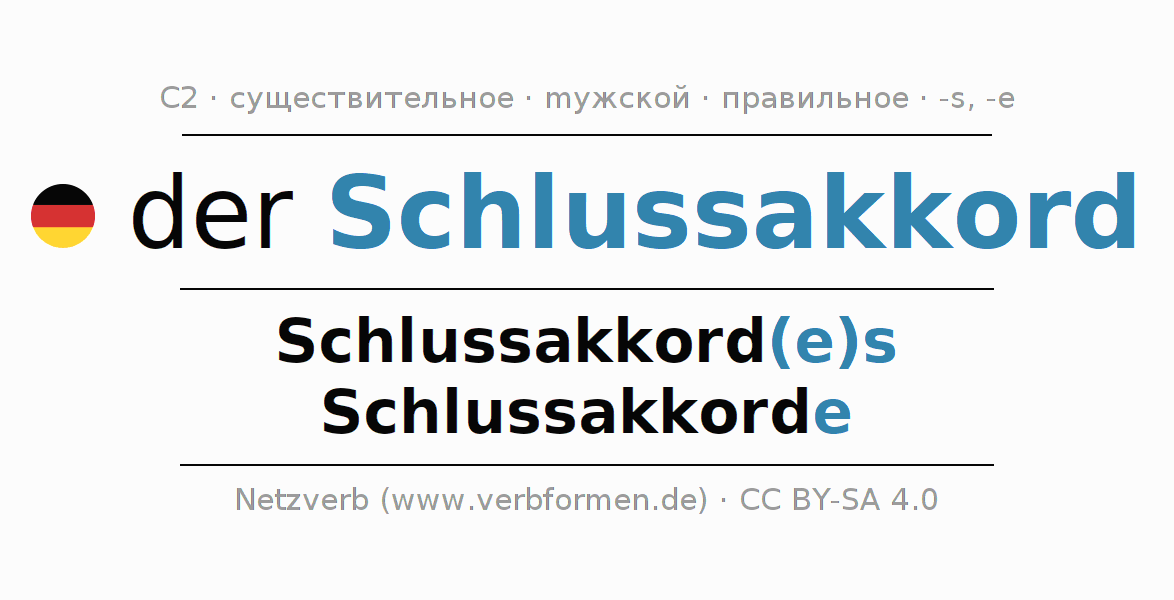 - Множественное число: die Schlussakkorde, der Schlussakkorde, den Schlussakkorden, die Schlussakkorde