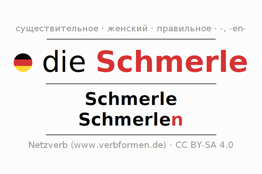 - Единственное число: die Schmerle, der Schmerle, der Schmerle, die Schmerle