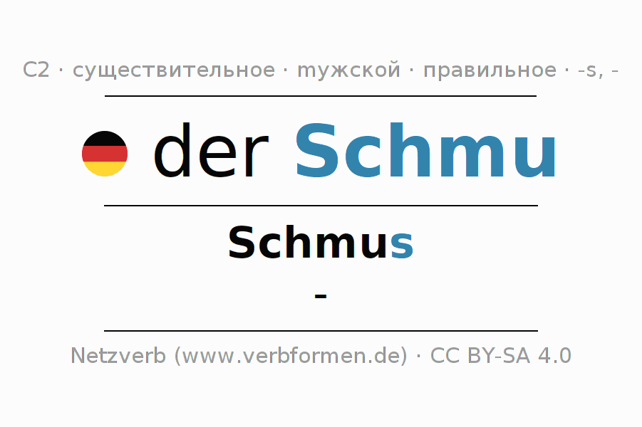 - Единственное число: der Schmu, des Schmus, dem Schmu, den Schmu
