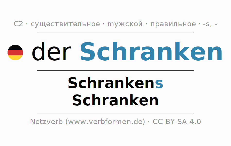 - Единственное число: der Schranken, des Schrankens, dem Schranken, den Schranken