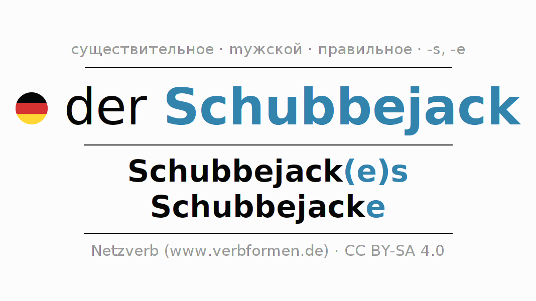 - Единственное число: der Schubbejack, des Schubbejack(e)s, dem Schubbejack(e), den Schubbejack
