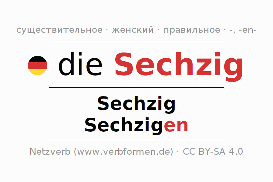 - Единственное число: die Sechzig, der Sechzig, der Sechzig, die Sechzig