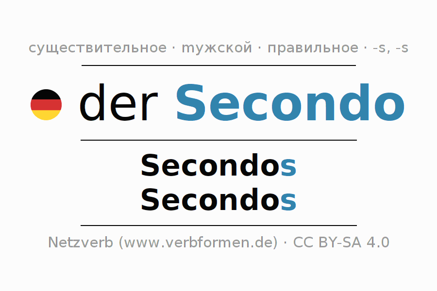 - Единственное число: der Secondo, des Secondos, dem Secondo, den Secondo