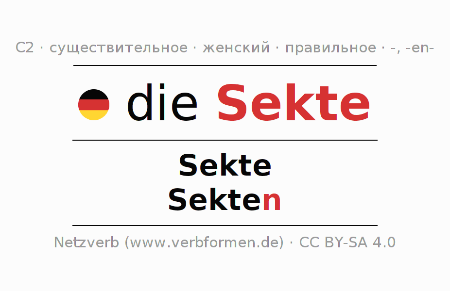 - Единственное число: die Sekte, der Sekte, der Sekte, die Sekte