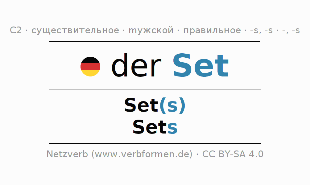- Единственное число: der Set, des Set(s), dem Set, den Set