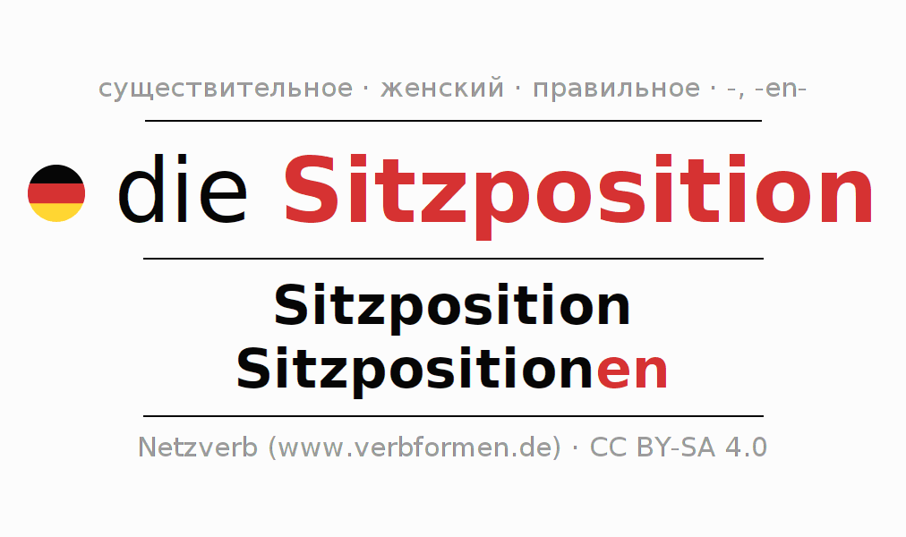 - Множественное число: die Sitzpositionen, der Sitzpositionen, den Sitzpositionen, die Sitzpositionen