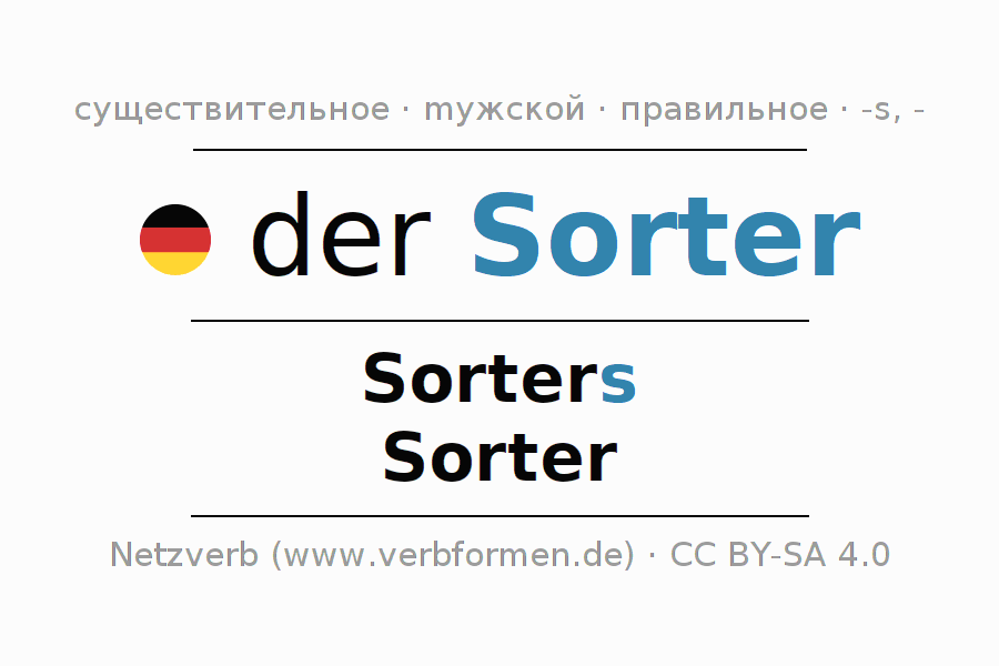 - Единственное число: der Sorter, des Sorters, dem Sorter, den Sorter