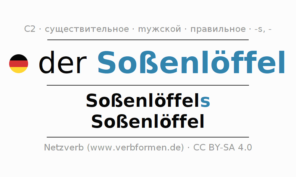 - Единственное число: der Soßenlöffel, des Soßenlöffels, dem Soßenlöffel, den Soßenlöffel