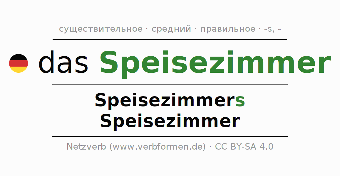 - Единственное число: das Speisezimmer, des Speisezimmers, dem Speisezimmer, das Speisezimmer