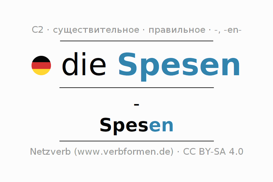 - Множественное число: die Spesen, der Spesen, den Spesen, die Spesen