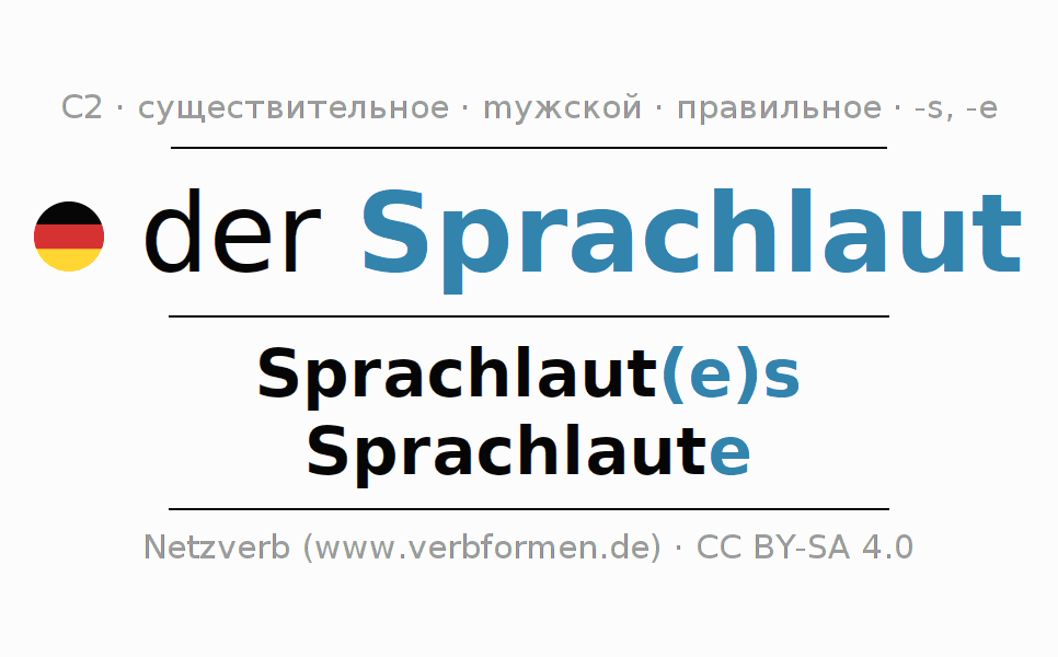 - Множественное число: die Sprachlaute, der Sprachlaute, den Sprachlauten, die Sprachlaute