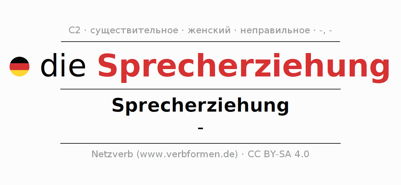 - Единственное число: die Sprecherziehung, der Sprecherziehung, der Sprecherziehung, die Sprecherziehung