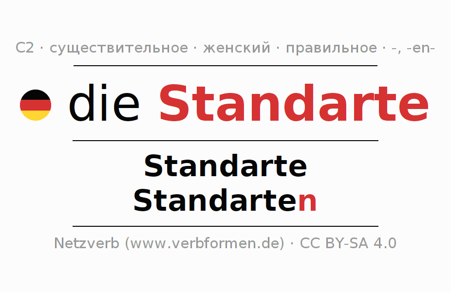 - Единственное число: die Standarte, der Standarte, der Standarte, die Standarte